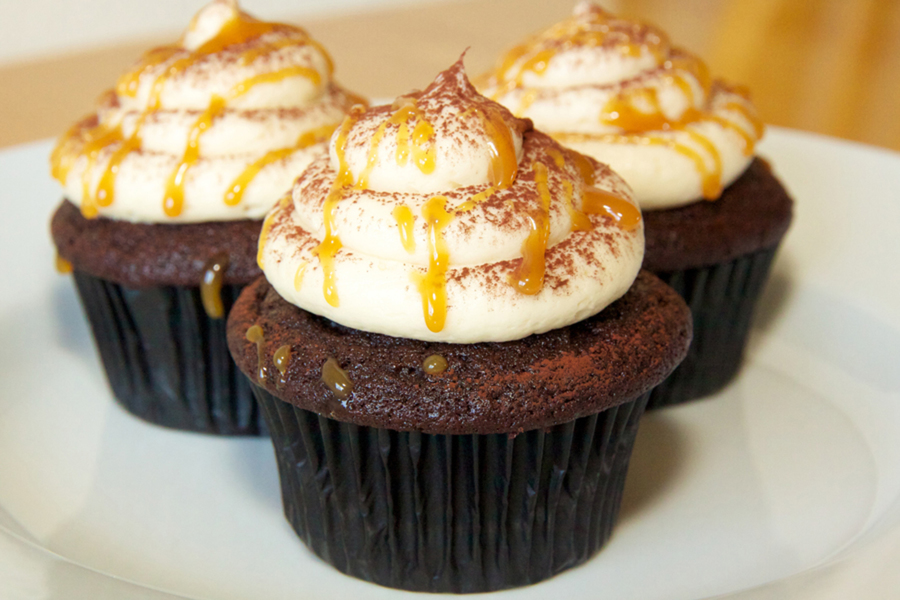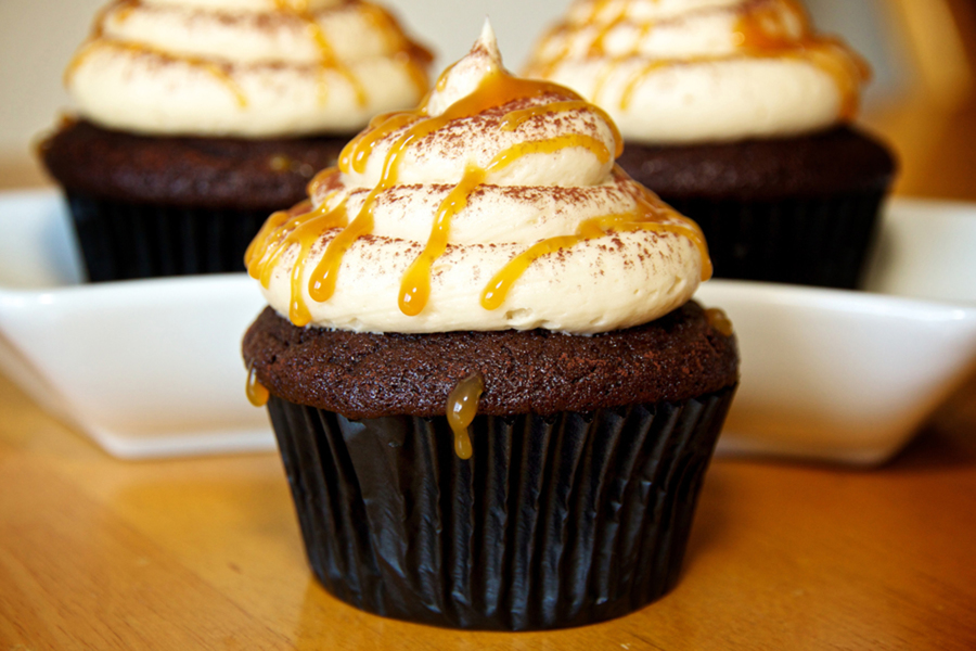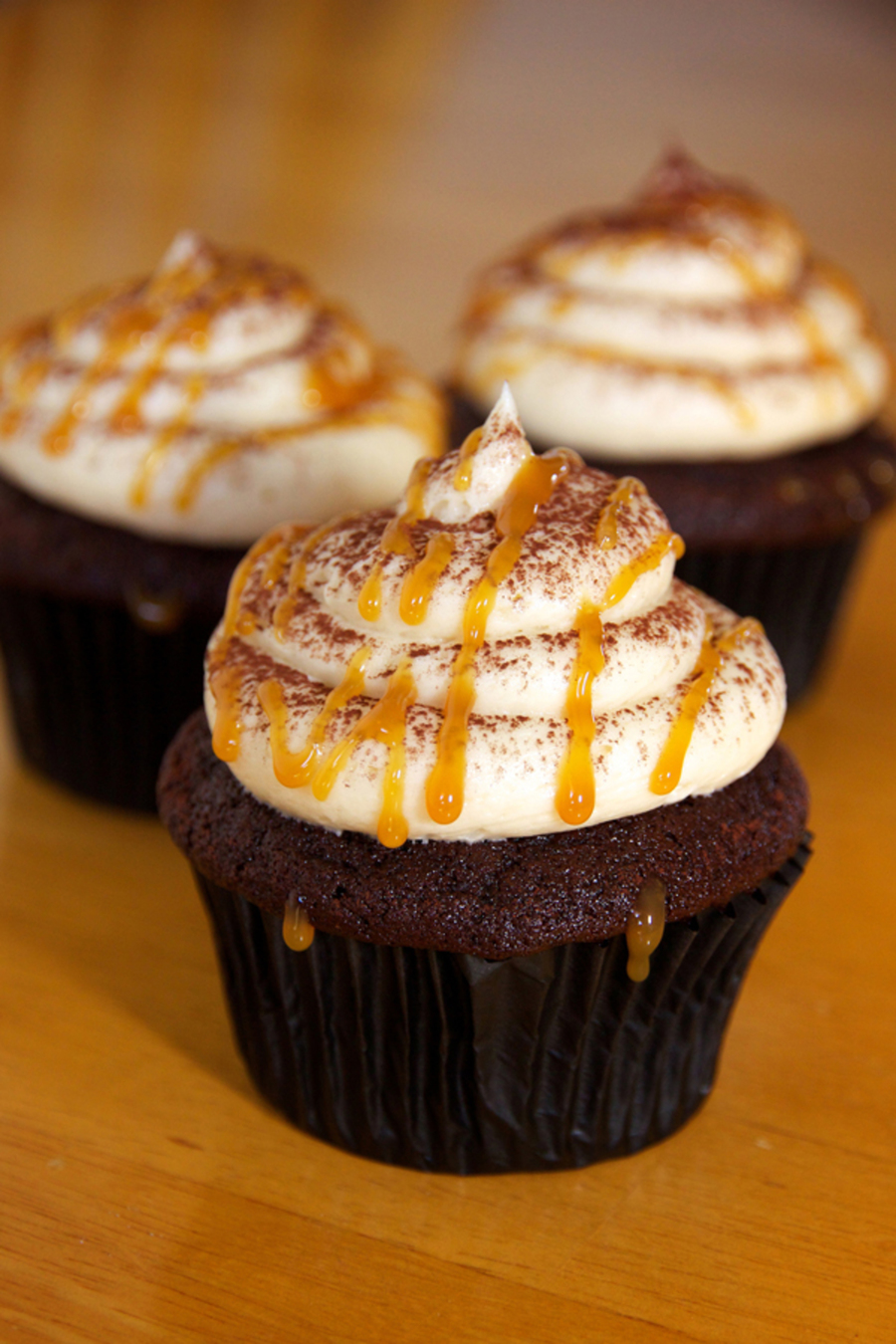 This was Chloe Coscerlli recipe. (she won cupcake wars with her vegan cupcakes) I didn't use her frosting recipe though. I put an Irish Creme Frosting on them, then sprinkled with cocoa and drizzled with caramel sauce. They were so yummy!