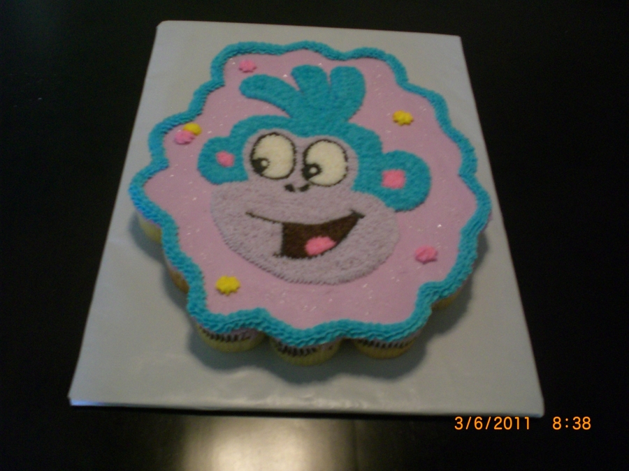 this is 24 cupcake, all BC. To make Boots i traced on some wax paper with and edible maker then used star tip 16, put in frezzer then pilled it off slowly and laied on top.