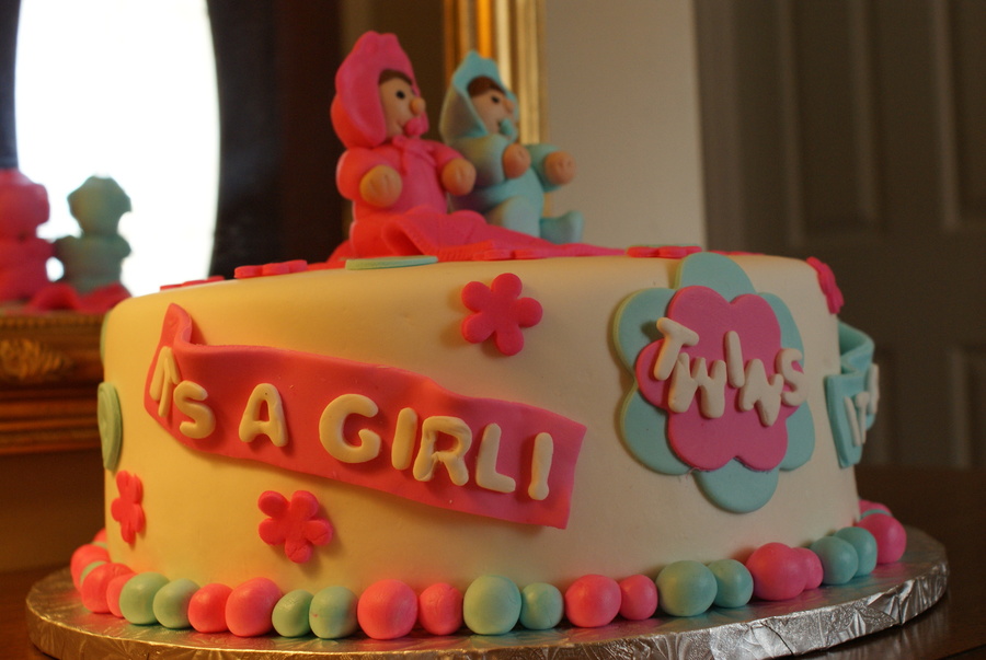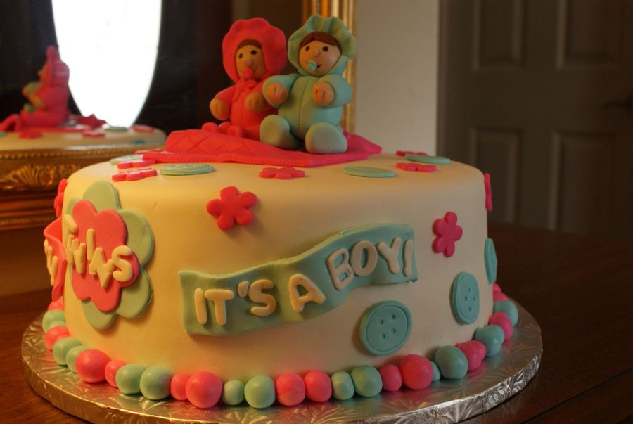 This was a cake I made for a shower for twins. Babies were 50/50 fondant/gumpaste, cake was WASC covered with vanilla butter cream then MMF.