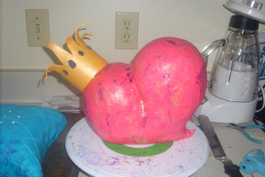 First time attempting a 3d heart, strawberry cake with lemon curd and lemon mousse. Gumpaste Tiara.
