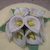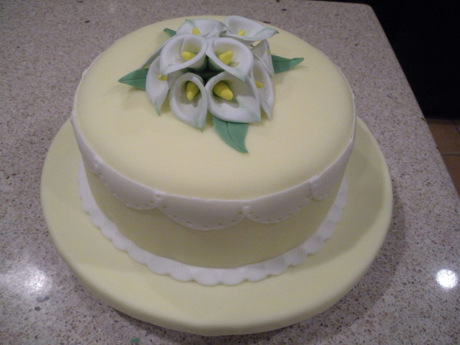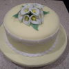 Spice cake with BC frosting covered with fondant. First gumpaste flowers.