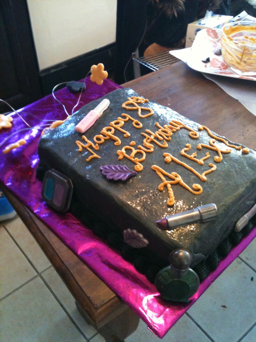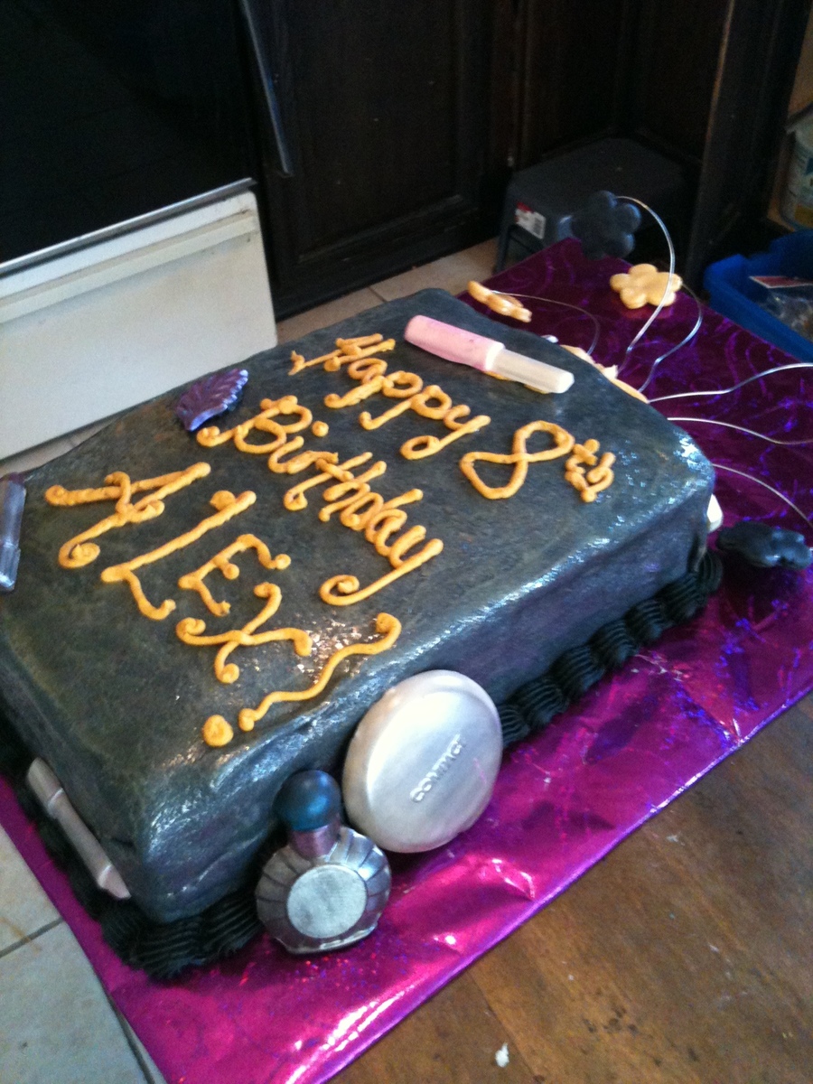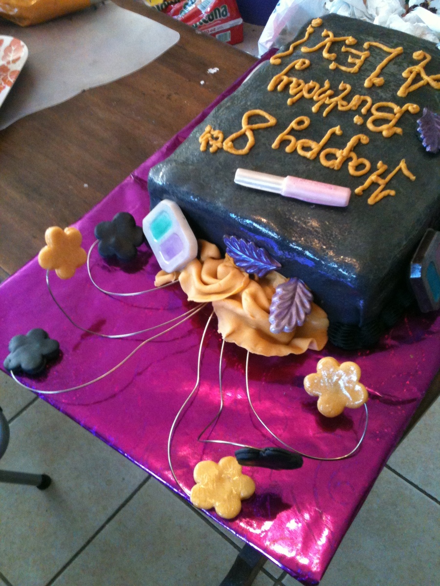 This was a VERY last minute order! The little girl was having a Spa & Glamour party and her mom really wanted a black and gold cake. I'm very happy with how it turned out especially with only 24 hrs. notice....btw, it's really hard to get buttercream a gold color that doesn't look like mustard lol!