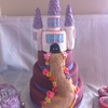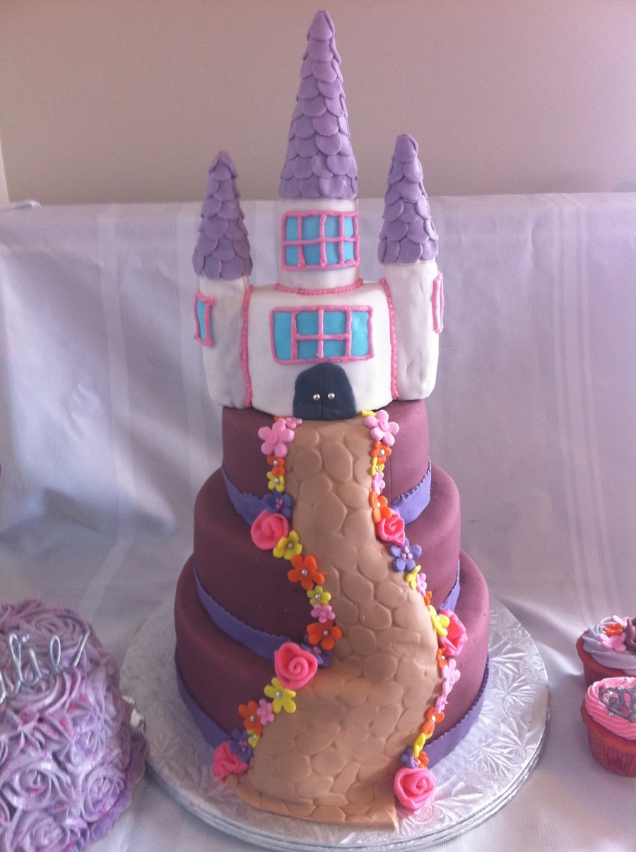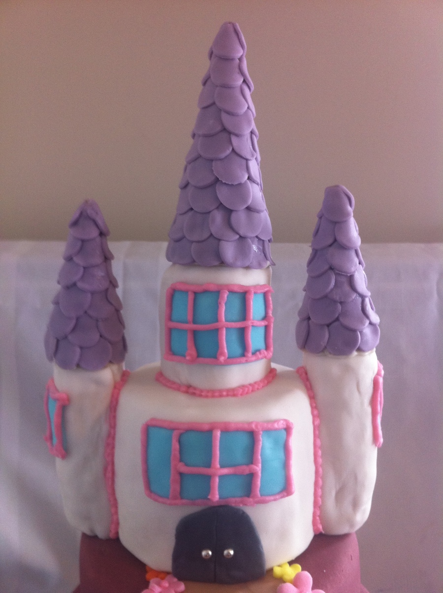10" Chocolate with coconut BC, 8" vanilla with vanilla BC, 6" carrot with cream cheese BC. Castle made from RKT and ice cream cones.