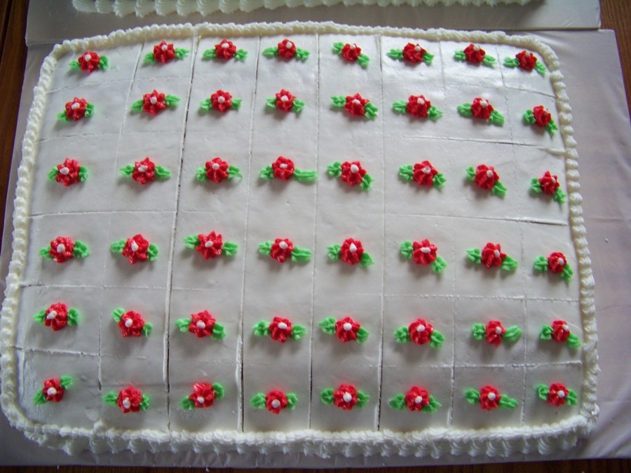 I actually made two of these. One is a yellow cake and the other a devil's food. They are frosted in BC. This is for a memorial service for a dear friend from my church. I tried to trace lines on the cake so whoever is serving will know where to cut. Any tips on doing that better, are welcome!!! TFL