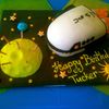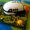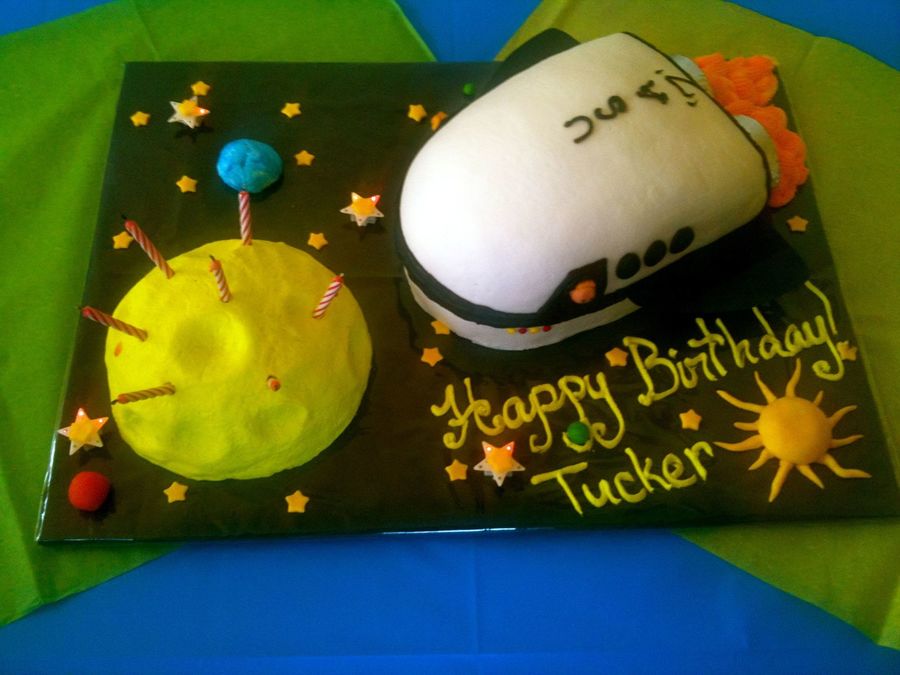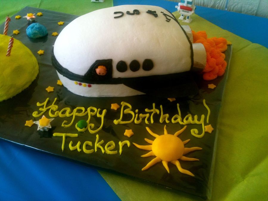 My son was into space and rockets at the time so we did a shuttle. I cheated on the rear of the shuttle those are paper towel rings wrapped in aluminum foil.