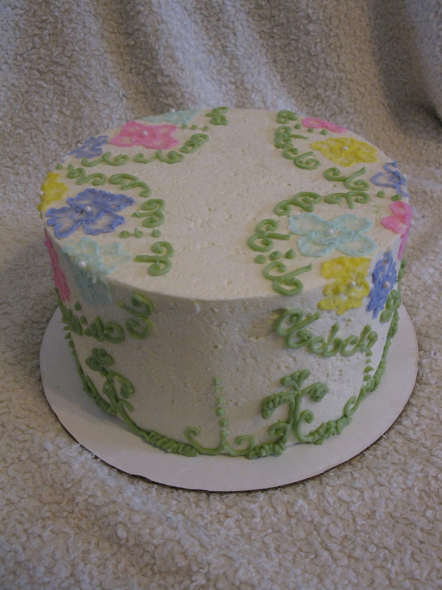 Just wanted to practice with BC and piping since I mostly play with fondant. Tried the upside-down method and don't really like how it turned out; not nearly as flawless overall even though the corners are really sharp. More practice, I guess. :-)