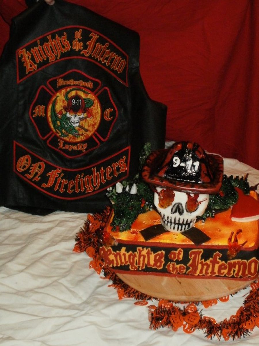 The knights of the inferno is a biker club for firefighters. The cake is a 3D design of their patch. The dragon is RKT