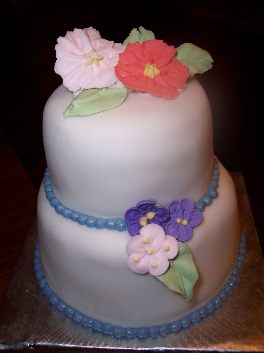Mini cake in fondant with RI flowers and border