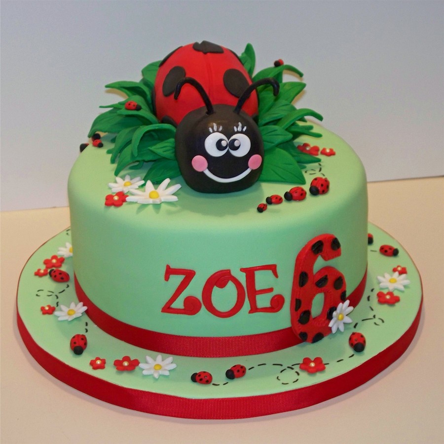 Strawberry-lemonade cake with lemon buttercream and fondant. Large ladybug is RCT all other accents are fondant w/tylose.