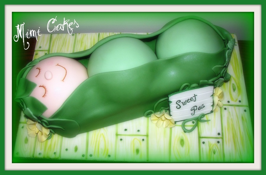 Sweet Pea - pea pod cake for a baby shower. Love doing shower cakes. They make me smile!