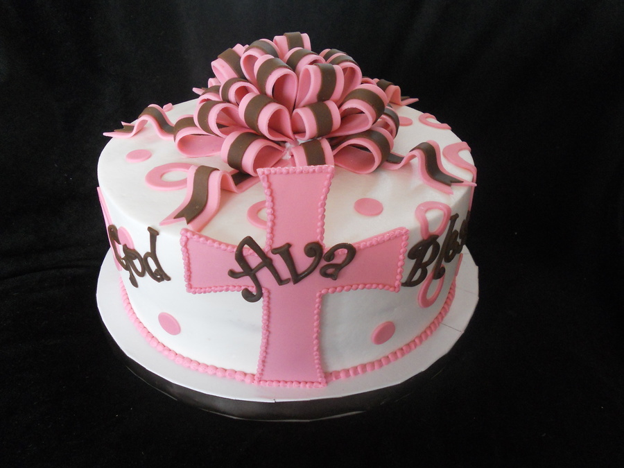 First Communion cake with bow and cross. Buttercream with fondant bow and cross.