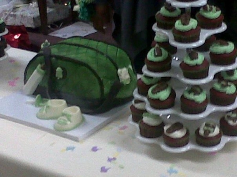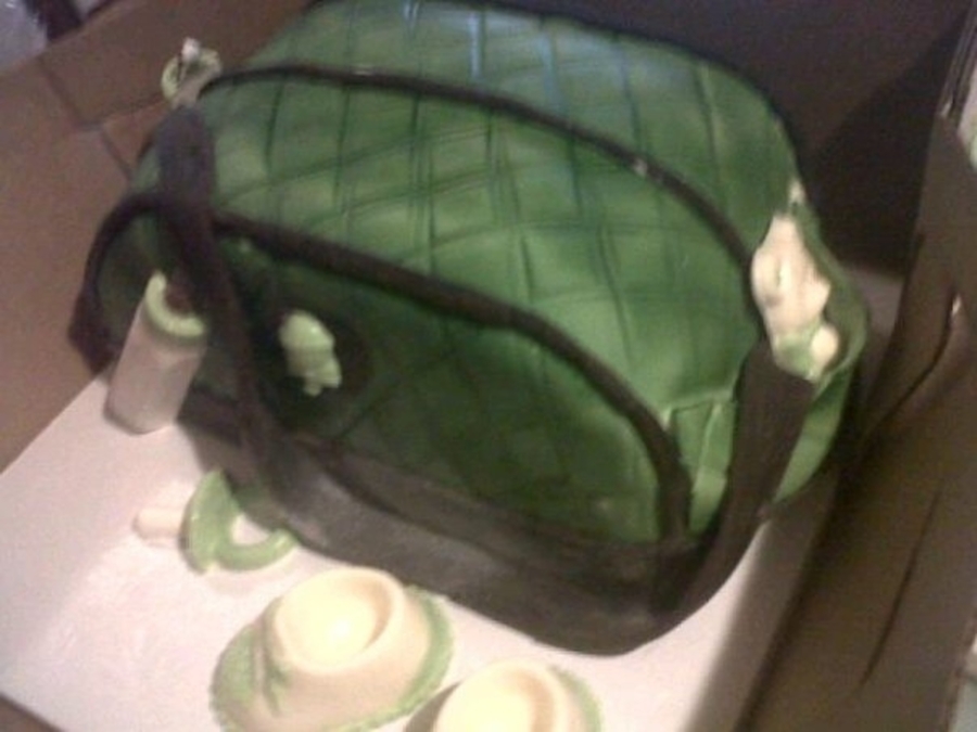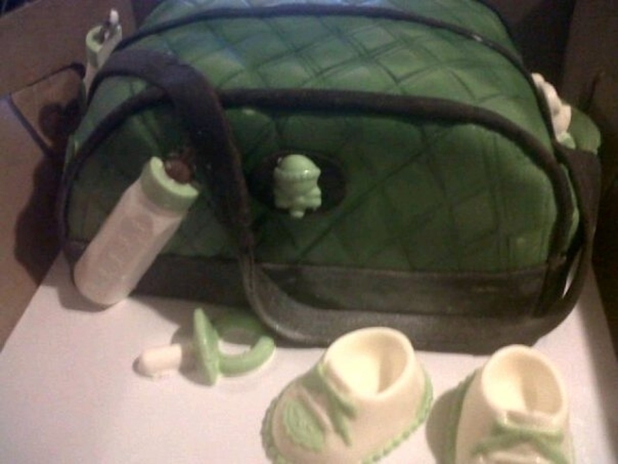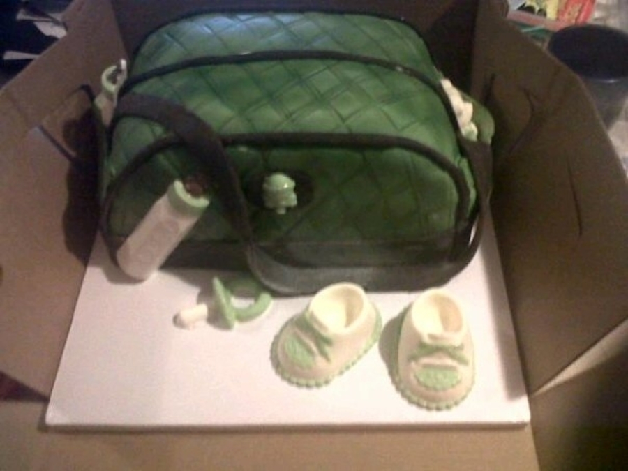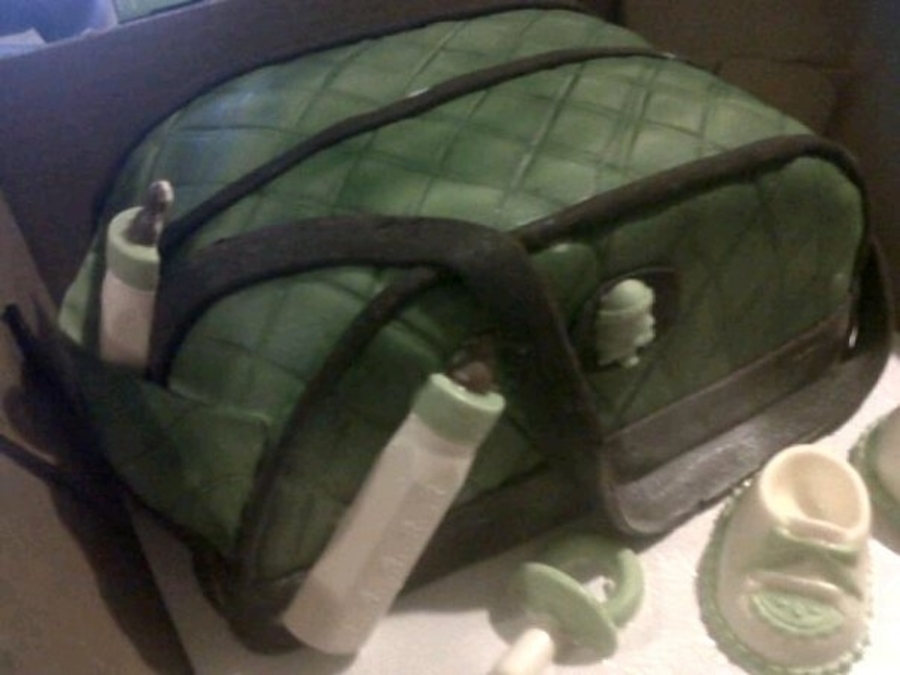 Diaper bag cake with chocolate accessories