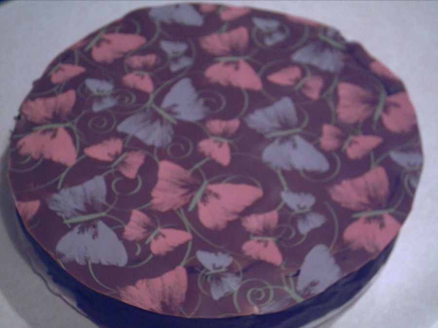 thank you it's a chocolate transfer they are easy and make things so pretty. usually the cakes themselves are harder than the decorations but I'm a pastry chef and not a very good decorator