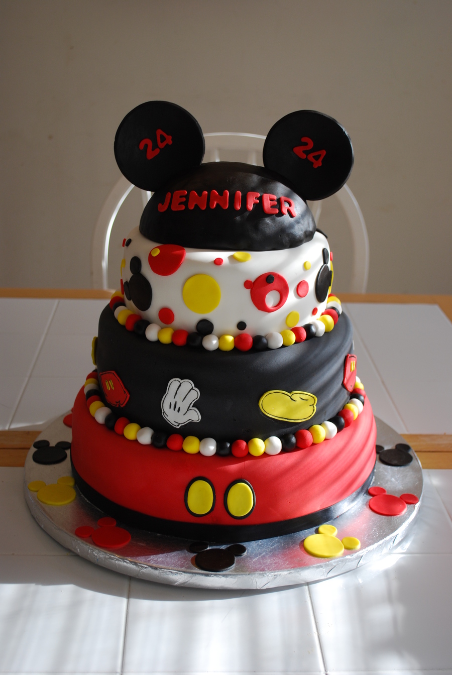 My sister wanted a Mickey Mouse cake for her birthday. This is what I came up with thanks to all the wonderful ideas on here!