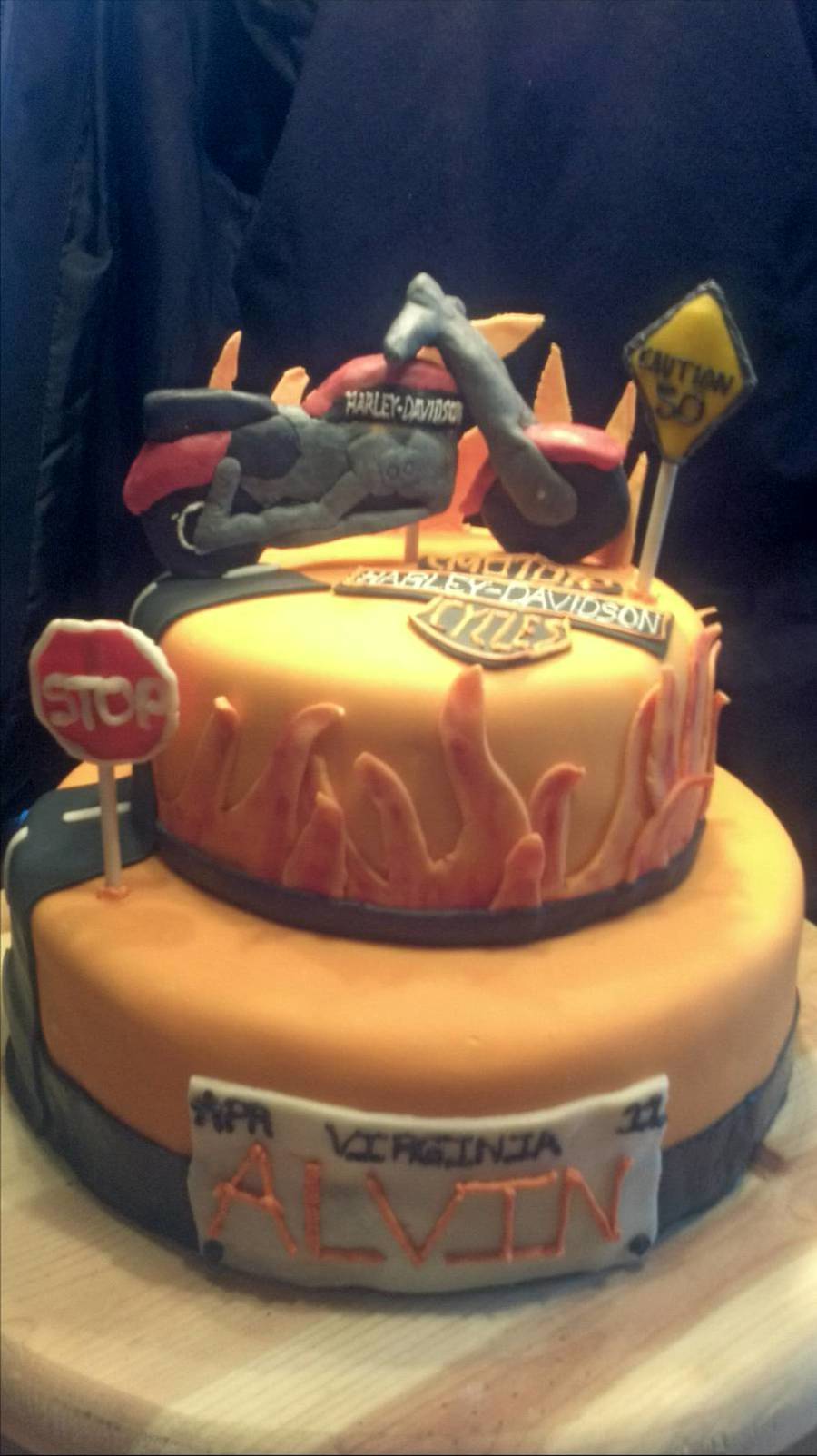 Top tier 8in' strawberry champaigne w/ganache filling. Bottom tier 12in' marble w/ganache filling. Whole cake buttercream covered in MMF. Motorcycle is modeling chocolate.