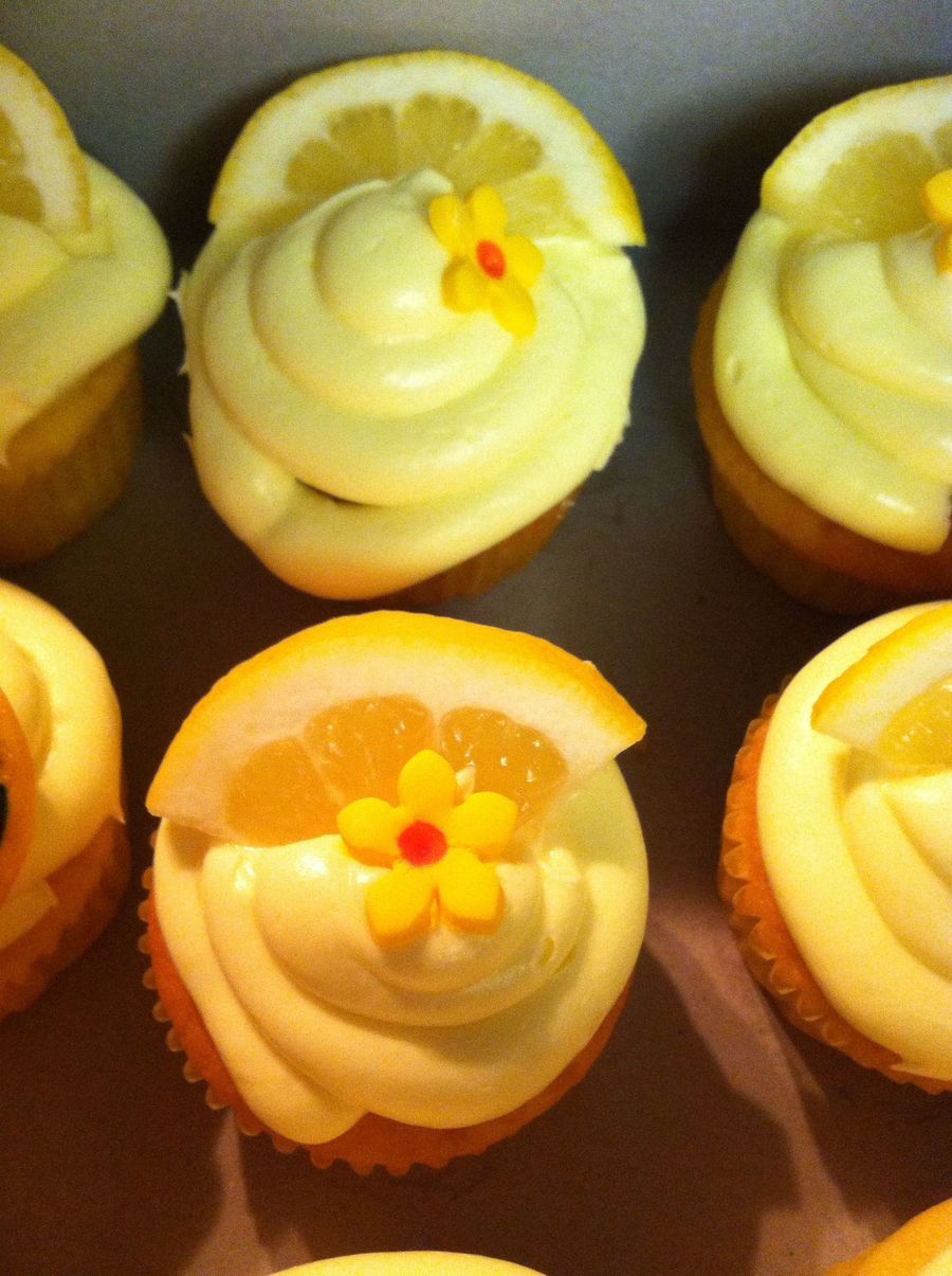 This was a lemon cake filled with lemon pudding, topped with lemon icing. I sliced up a lemon into wedges and made fondant flowers.