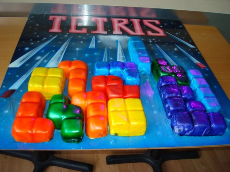 Custom cake board was hand painted by my artist friend. Cakes are all 2 layers of various flavored cake, with a filling layer of various flavors to compliment cake flavor. I made this cake for myself for my 30th birthday party. I used a Letters cake pan to create the various cake shapes.