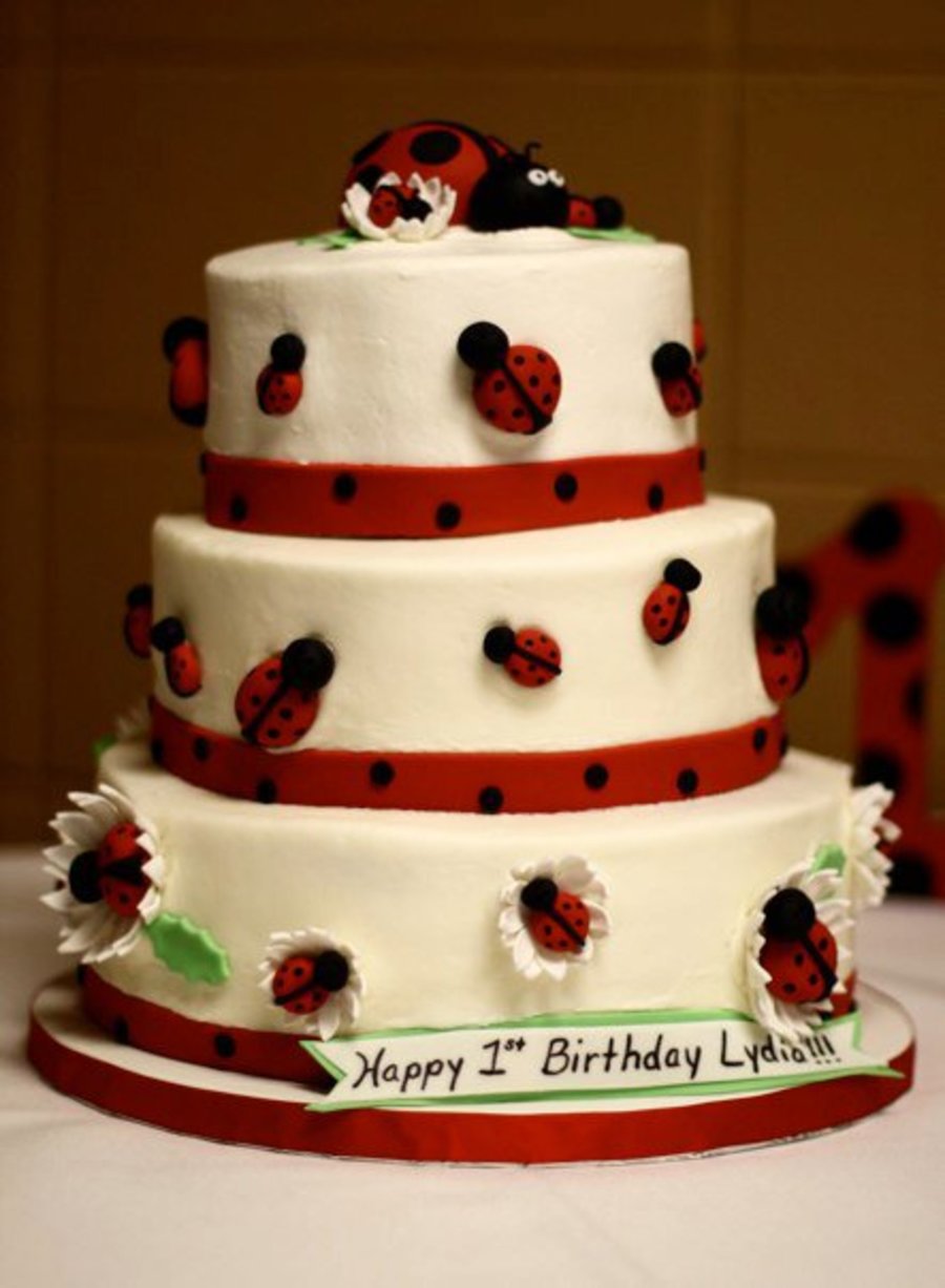Made this cake for friend's daughter's first birthday party. I was sick that week and had to cover it in buttercream the day of the party with no time to refrigerate it so it could set up. It wobbled like crazy in the car! I thought I was going to have a cake disaster, but just ended up with a slightly leaning cake. Oh well, lesson learned! They loved the cake, thankfully. :)