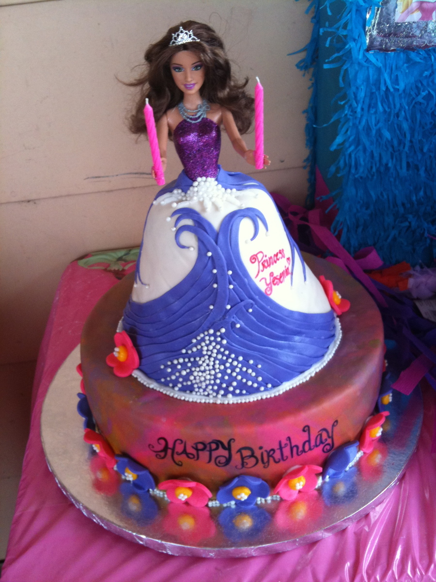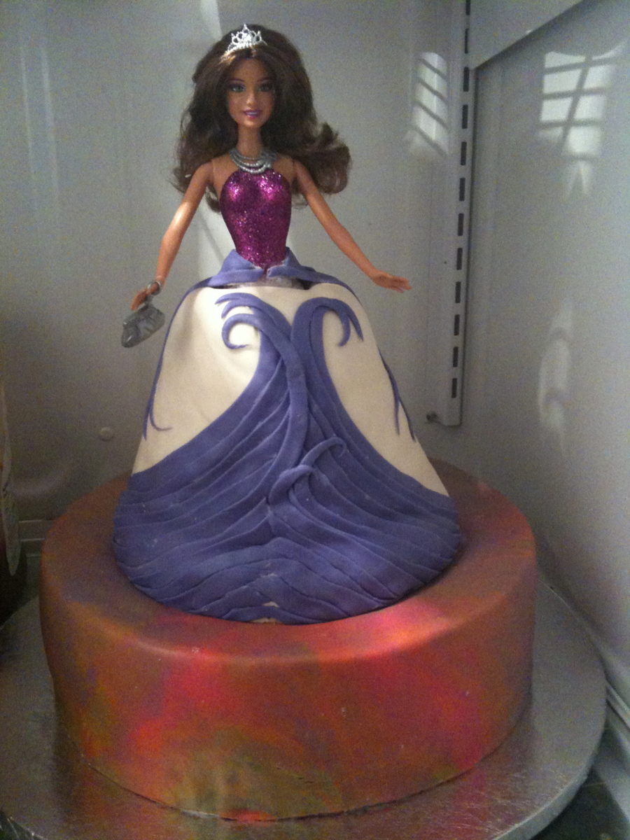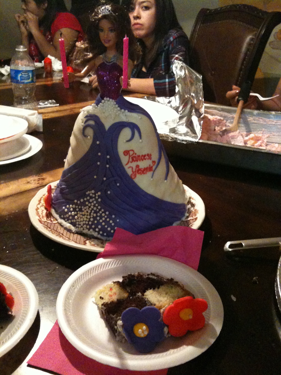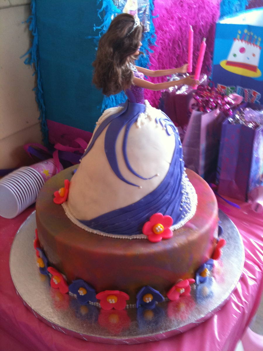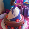 This is a princess cake I made for my cousin. She wanted a princess cake and I thought using Cake Central for inspiration was the way to do it! The base is 2 12 inch rounds styled into a checkerboard to which when you cut a slice it shows. The flowers are fondant. The "dress" is 2 8 inch rounds and 2 6 inch rounds shaped into a dress. i used chocolate fudge and vanilla confetti cake with chocolate vanilla buttercreme. the entire cake is covered in fondant and I used pearls to decorate the cake.