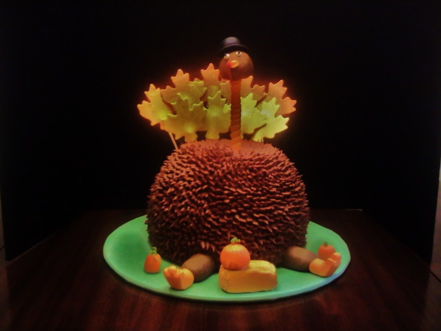 A little late getting this picture posted! Butter cake with fudge buttercream and fondant accessories.