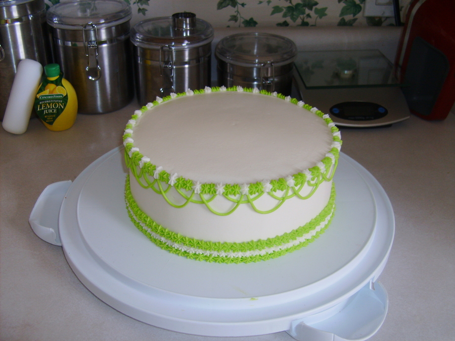 This was a practice cake for me. Working on that even smooth buttercreamed cake. My co-workers love when I am practicing!
