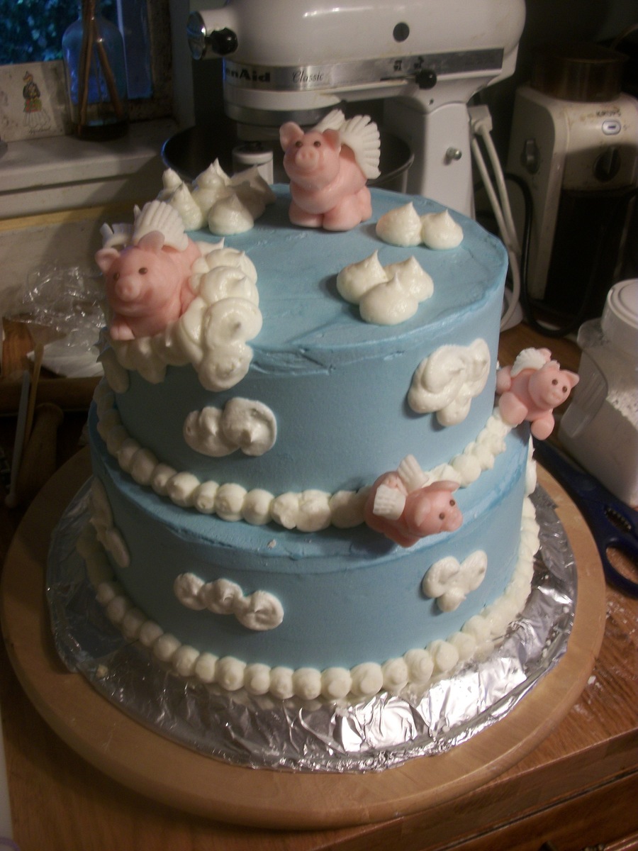 baby shower for my sis that could not get pregnant. all butter cream with candy clay pigs