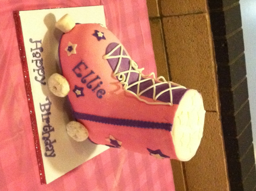 Cake for a 6 year old princess skating party. Decided to try my first 3D skate. It was almost a foot tall. Chocolate WASC covered w/ MMF, and powdered donuts for the wheels. Birthday girl and guests were thrilled!