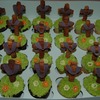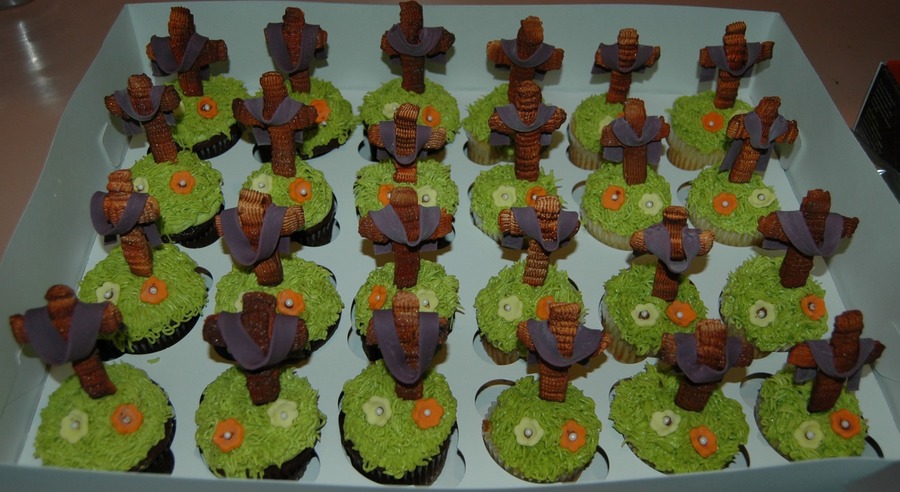 Choc and Vanilla cupcakes with buttercream. Crosses made from raspberry royal icing and fondant. Thank you Idreamofcakes for the idea. TFL