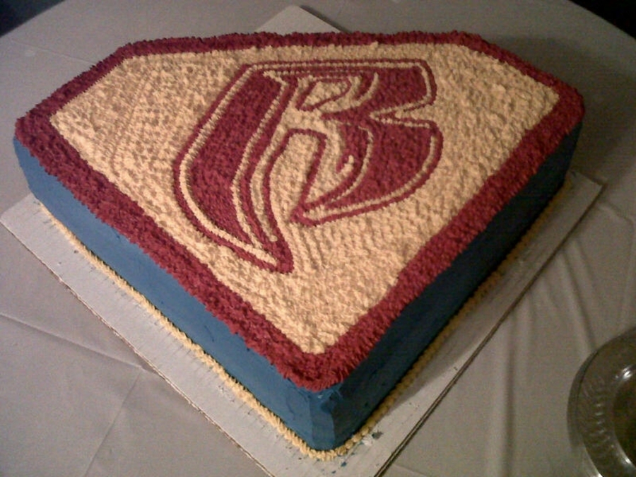 This was my husband's birthday cake. He is a member of the Ruff Ryders motorcycle group. He is known as Superman. I wanted to combine the Ruff Ryder logo with his riding name and this is the end result..