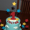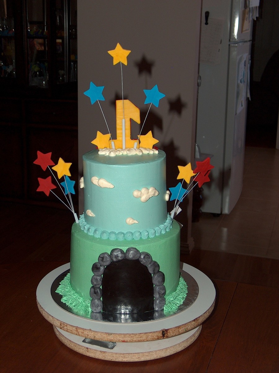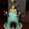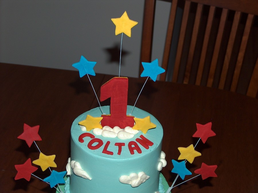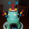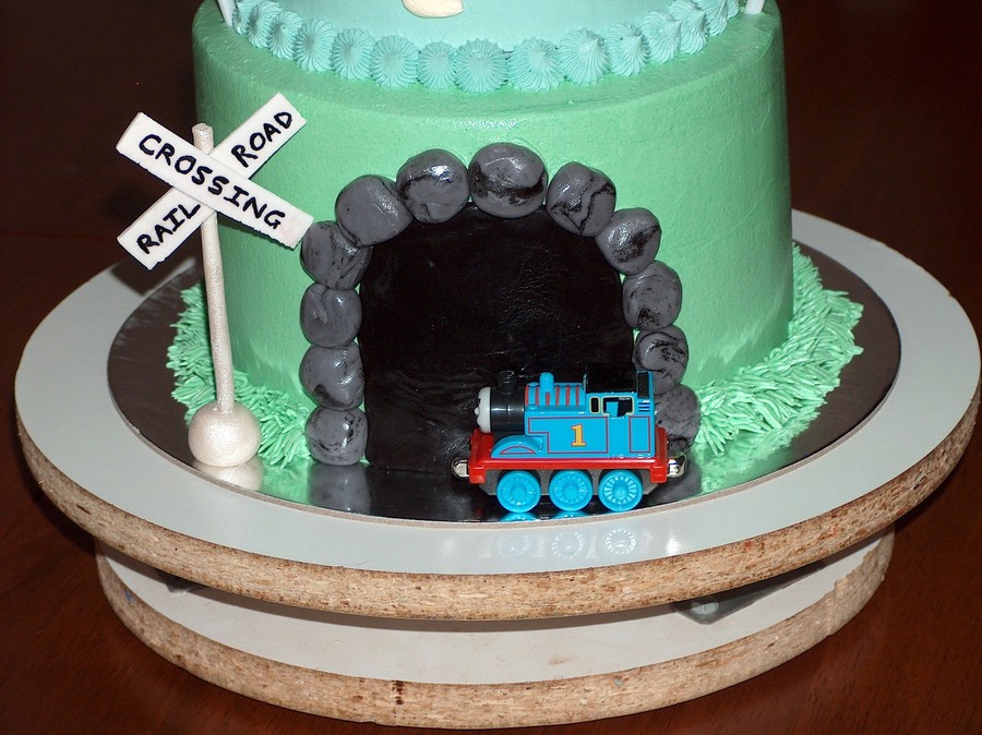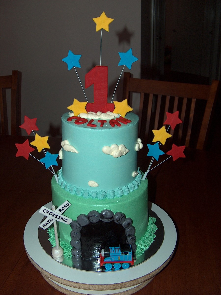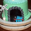 2 tier red velvet cake filled and frosted in buttercream. All other decorations are marshmallow fondant. Thomas the tank engine is a toy.