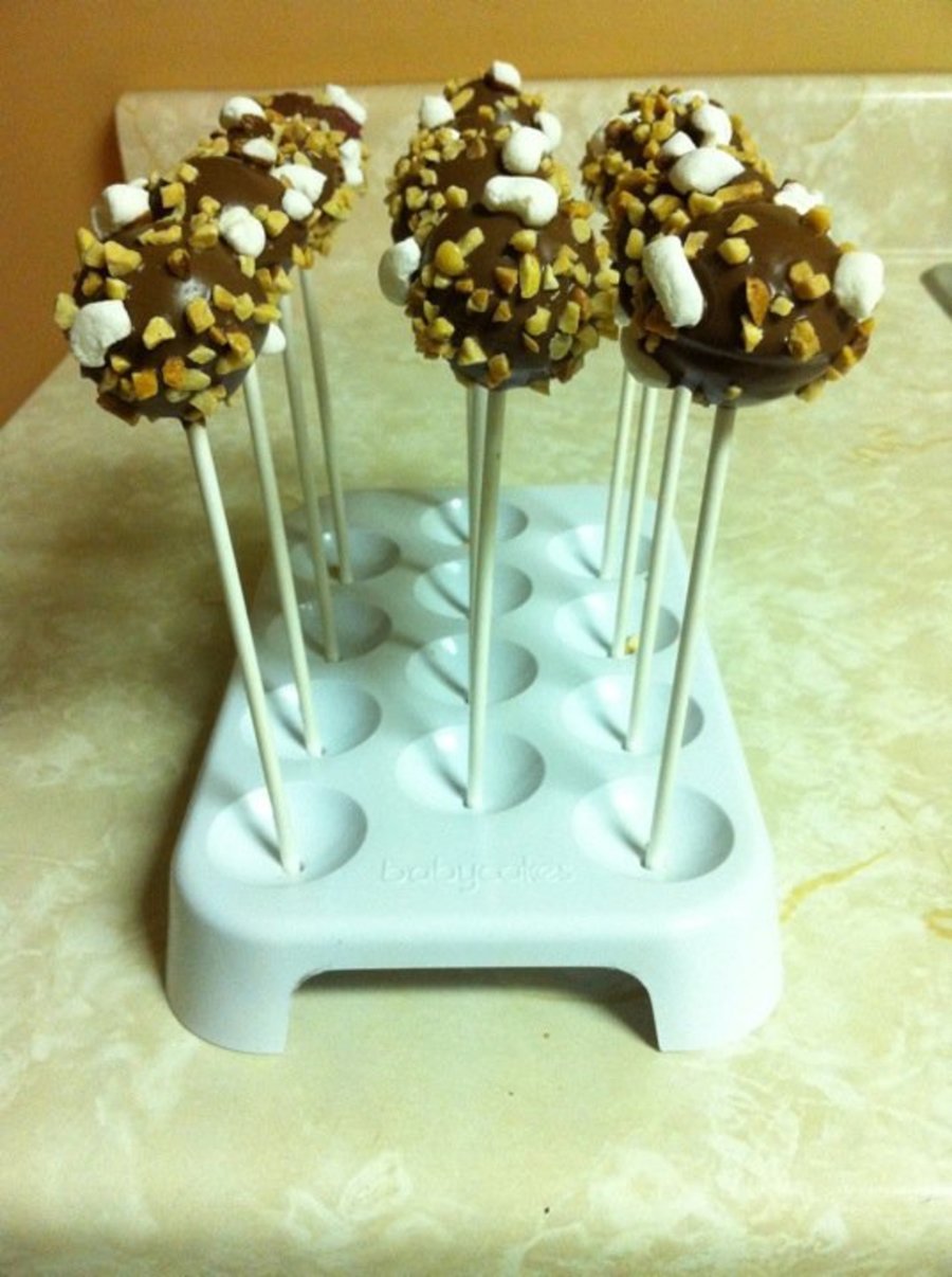 Hi, These are vanilla cake dipped in chocolate. I added peanuts and marshmallows. This was my first time using the Babycakes cake pop maker. Thanks for looking.