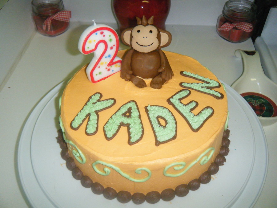 Monkey cake for my youngest son's 2nd Birthday. Cake is Buttercream...monkey is fondant.