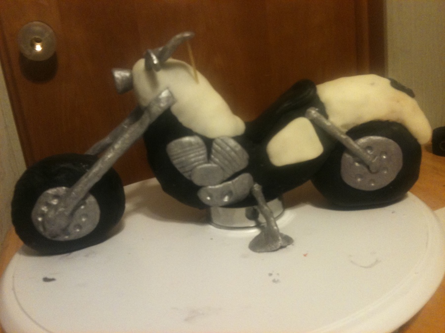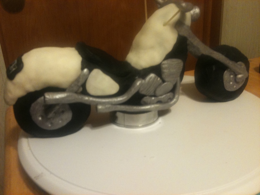I made this out of rice crispys and covered in modeling chocolate. I then put it on a round cake covered in orange fondant but forgot to take pics, oops!!!!!!!