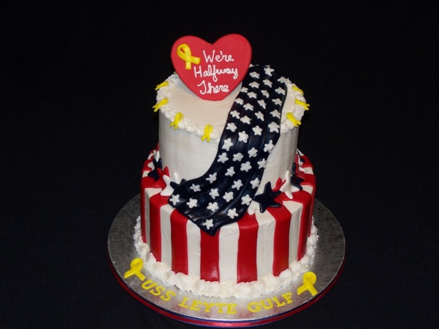 I did this cake for the celebration of the halfway point in a deployment. Accents are fondant. Cake is iced in buttercream.