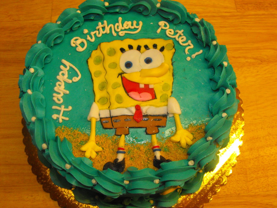 Buttercream cake, with fondant Spongebob. Crushed graham crackers for sand.