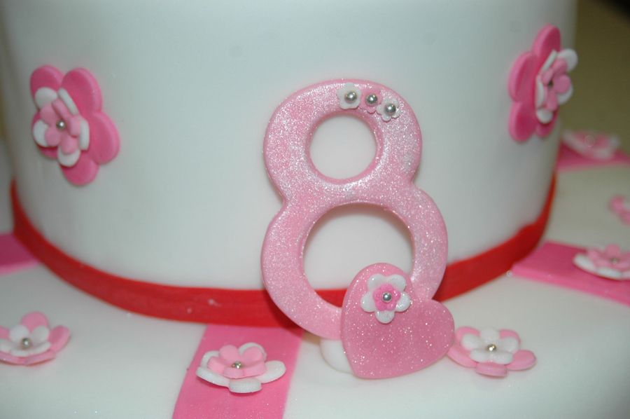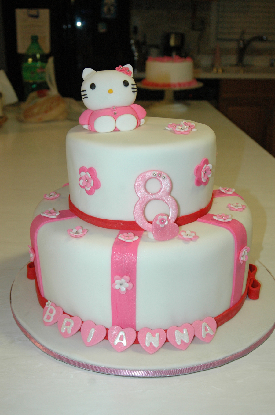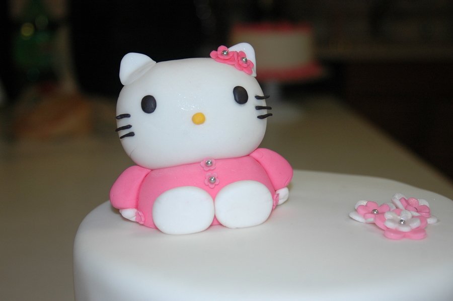 Hello Kitty, flowers and hearts made of fondant 12' and 8" cakes covered in fondant