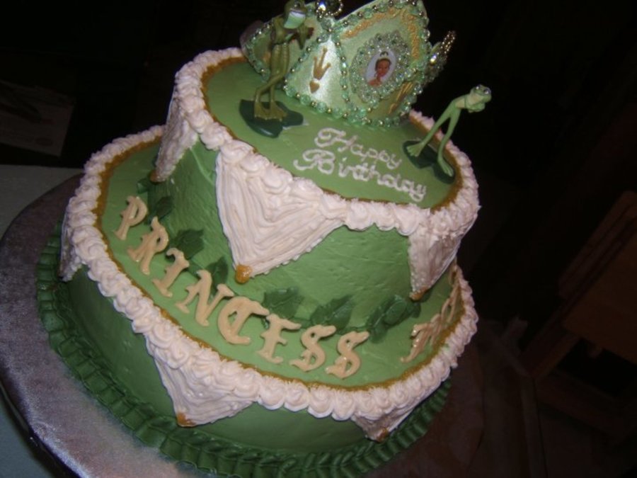 Niece 5th birthday. Both tiers vanilla cake all buttercream icing. Princess tiara and character figures used as toppers. "Princess Jaliah" lettering done with candy melts.