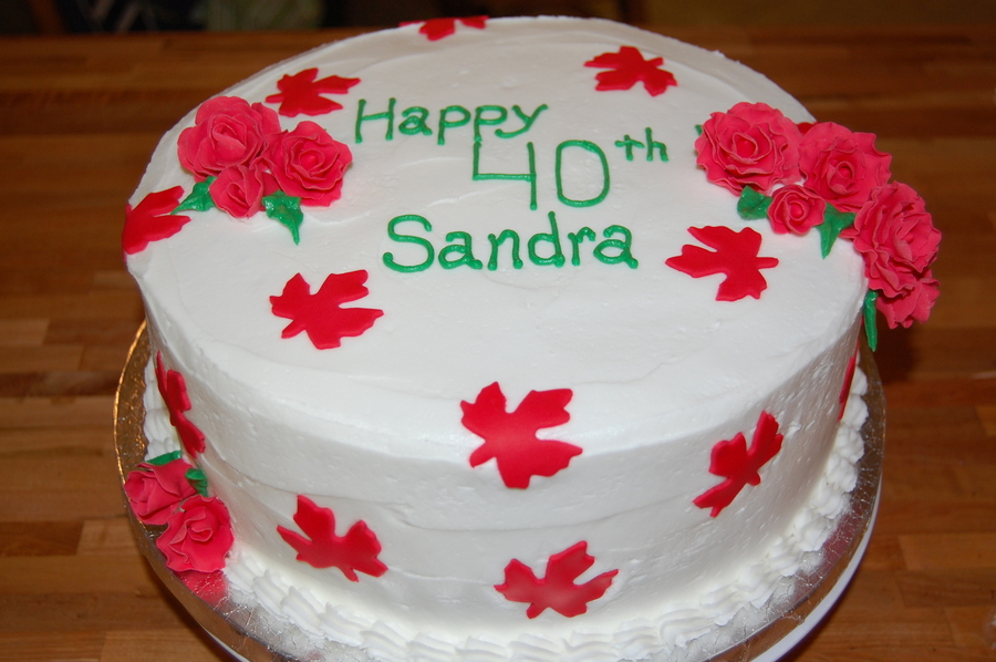 Birthday cake for a woman from Canada. Fondant leaves and roses, buttercream base