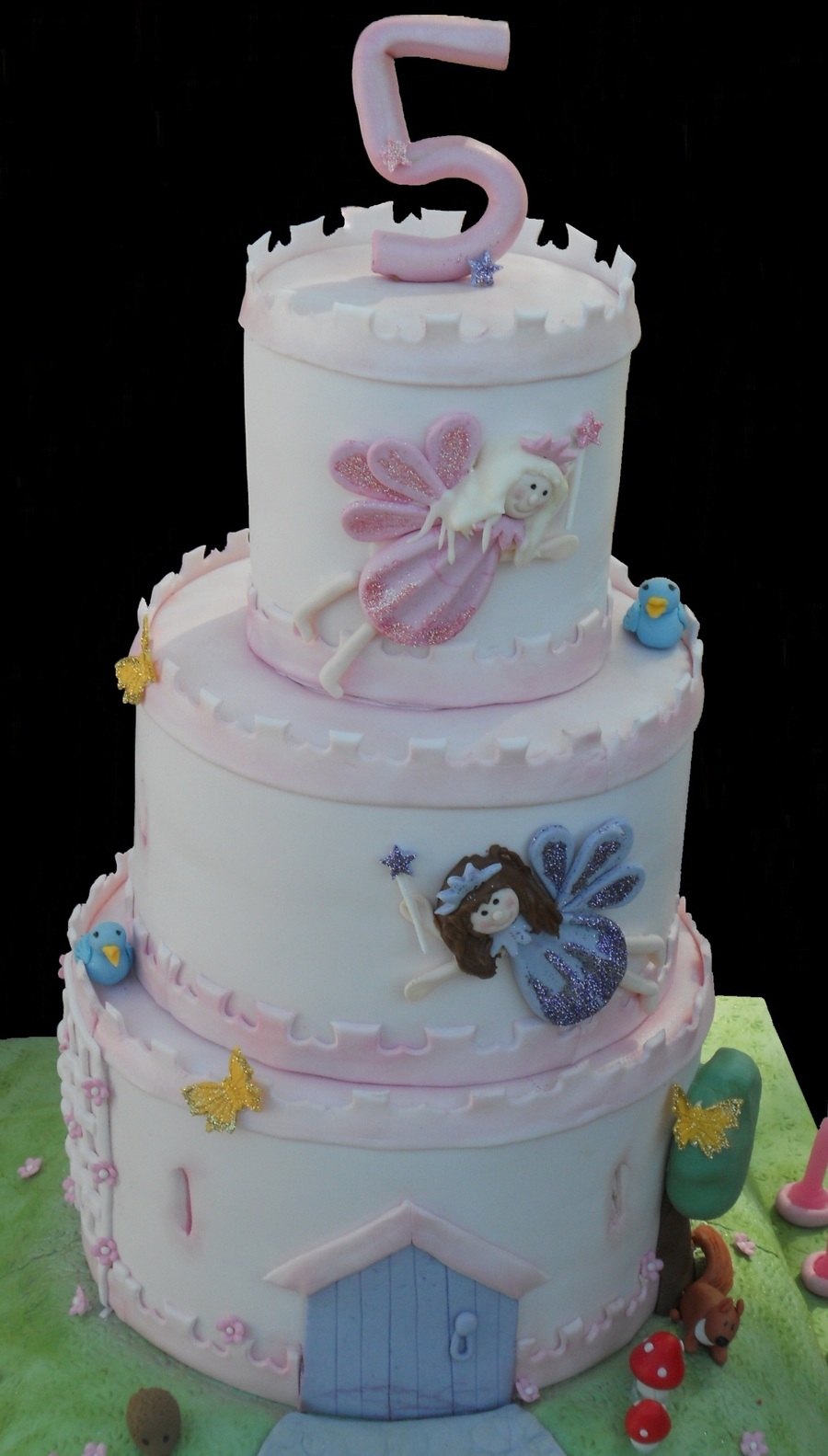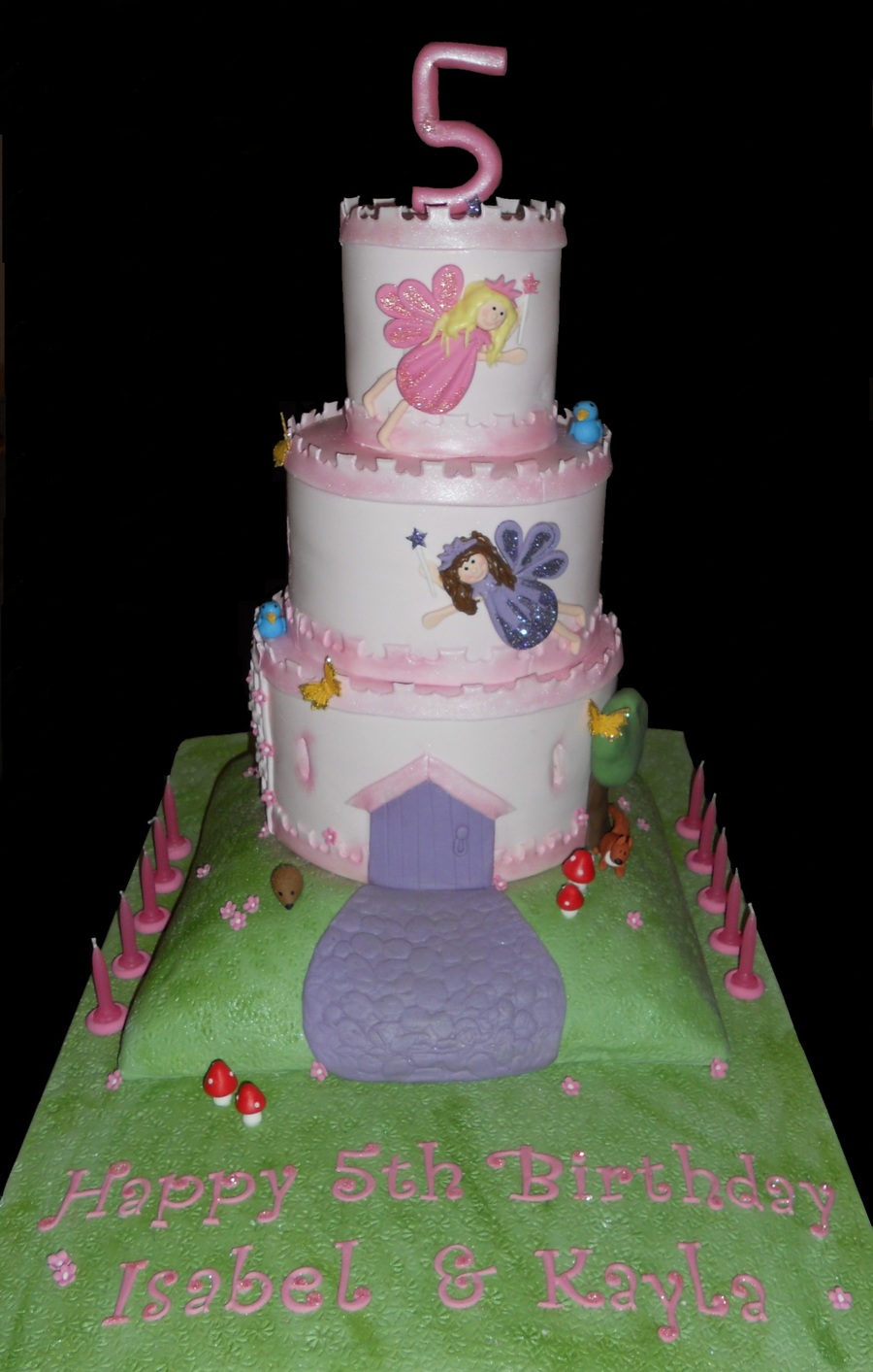 A dark chocolate mud cake I made for my daughter and her friend for their 5th birthday party! It's a carved 12", 8", 6", 3.5" tiers, everything is edible and hand made. This one was an all nighter but I had a great time making it and the reactions at the party were overwhelming! Thanks for looking and all comments welcome!