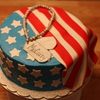 Buttercream frosting, fondant flag and fondant accents.