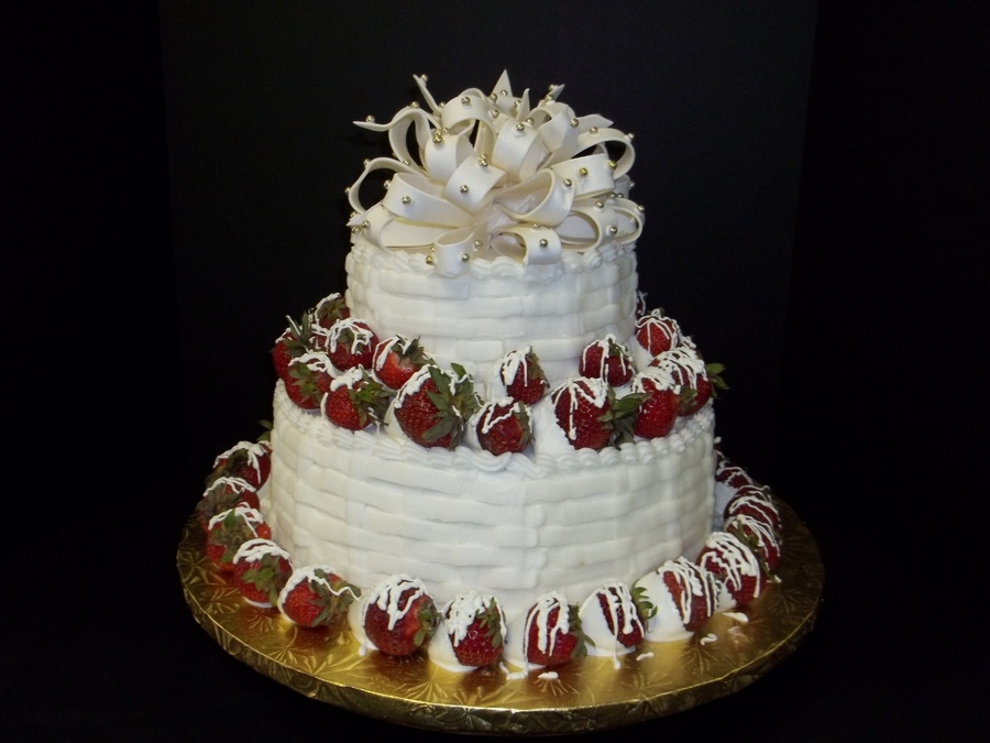 10in/6in Red Velvet Cream Cheese filling Buttercream with Basketweave design. Gumpaste bow