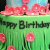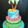 This was a birthday cake for a MOPS group. I marbled the fondant to look like water, and I added an innertube, sunglasses, and a shell to the beach. the bottom of the cake looks like a grass skirt to make it really look like Hawaii!