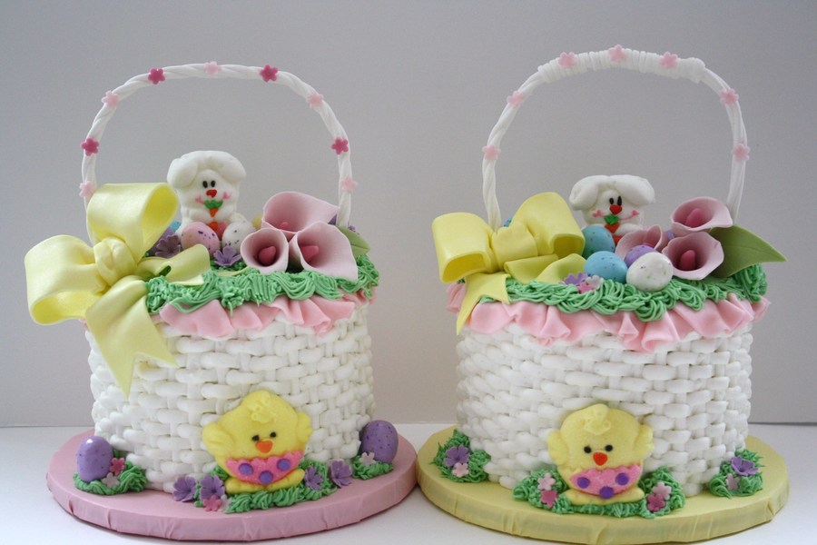 I made these Easter Basket cakes for my parents and my mother in law. Carrot cake with buttercream icing, fondant accents. The eggs are chocolate speckled eggs, and the chicks and rabbits are marshmallows that I found at Walmart! Oh yeah. the calla lilies are gumpaste.