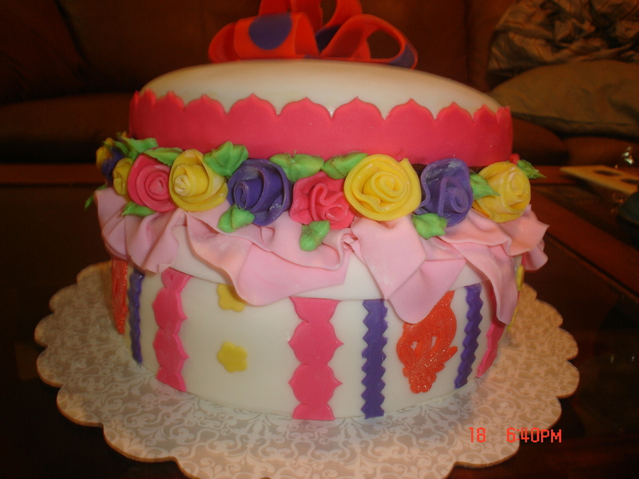 Another Hat Box Cake for a Birthday. Done all in fondant.