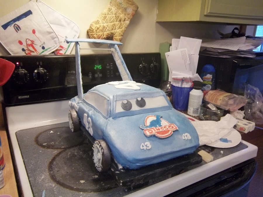 vanilla cake wtih vanilla buttercream icing. i used the marshmallow fondant recipe that i found on here and you were all right the kids loved it. the wheels are made with candy clay. did a FBCT for the dinoco logo on the hood. Not my best but i've done worse