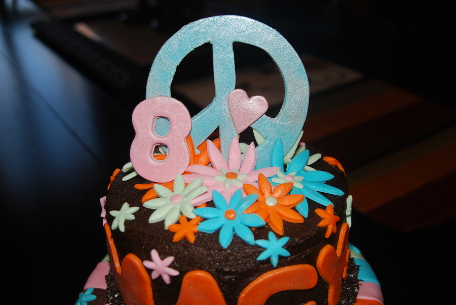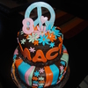 Bottom Tier Chocolate, top tier wasc cake covered in buttercream with with fondant accents made for a friend of mine to match her paper goods...her daughter loved it!