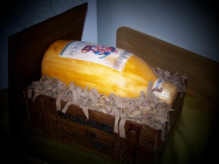50th Birthday cake for my brother-in-law. First attempt at a bottle cake. Wish I would have made the bottle smaller. But then he does love his Captain! Now I know for the next time........