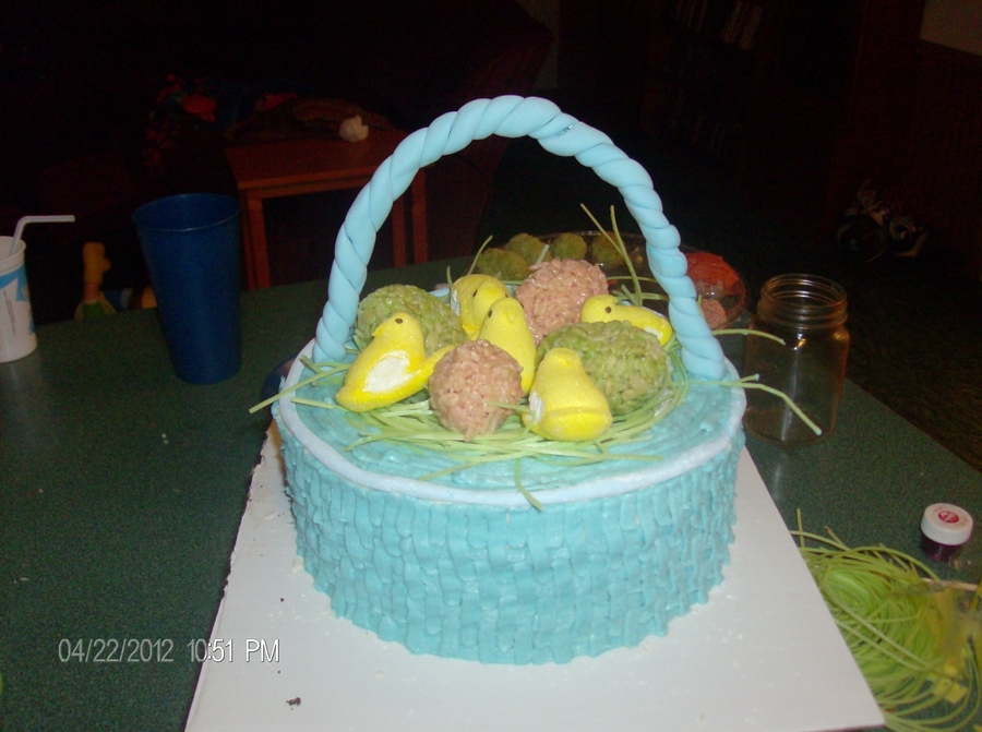 BC basket weave, edible easter grass, RC eggs, peeps, with MMF handle and rim.