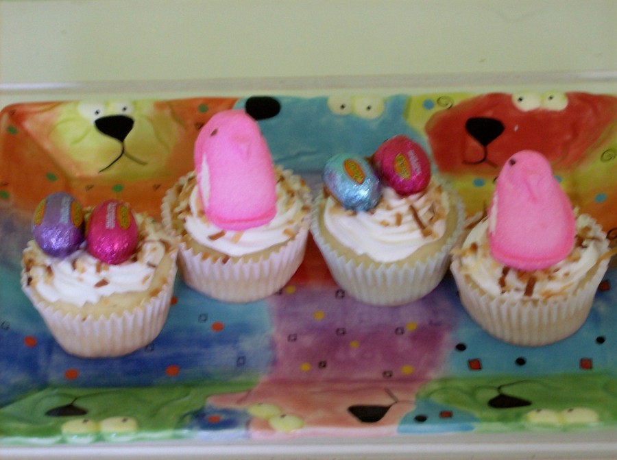 Banana cuppies filled with chocolate truffle filling; coconut nests and peanut butter eggs and peep chicks