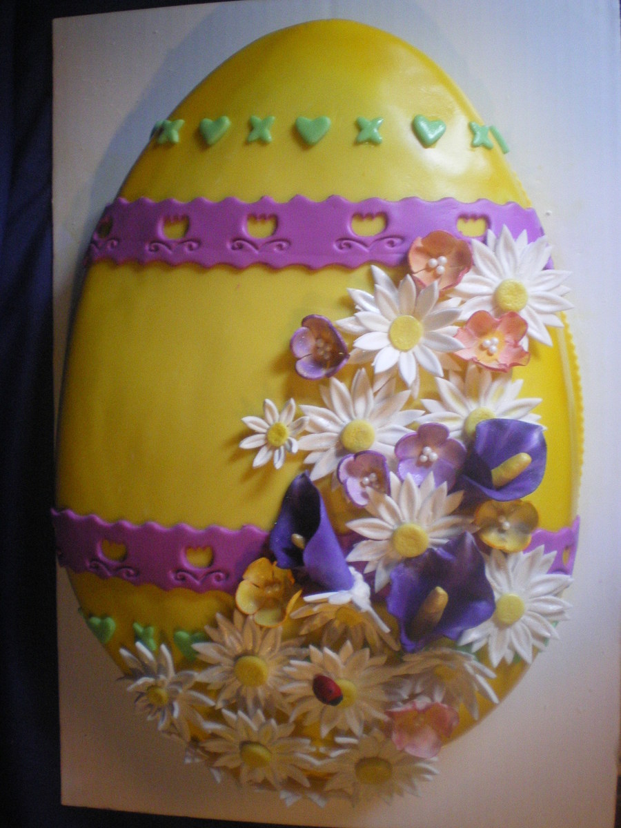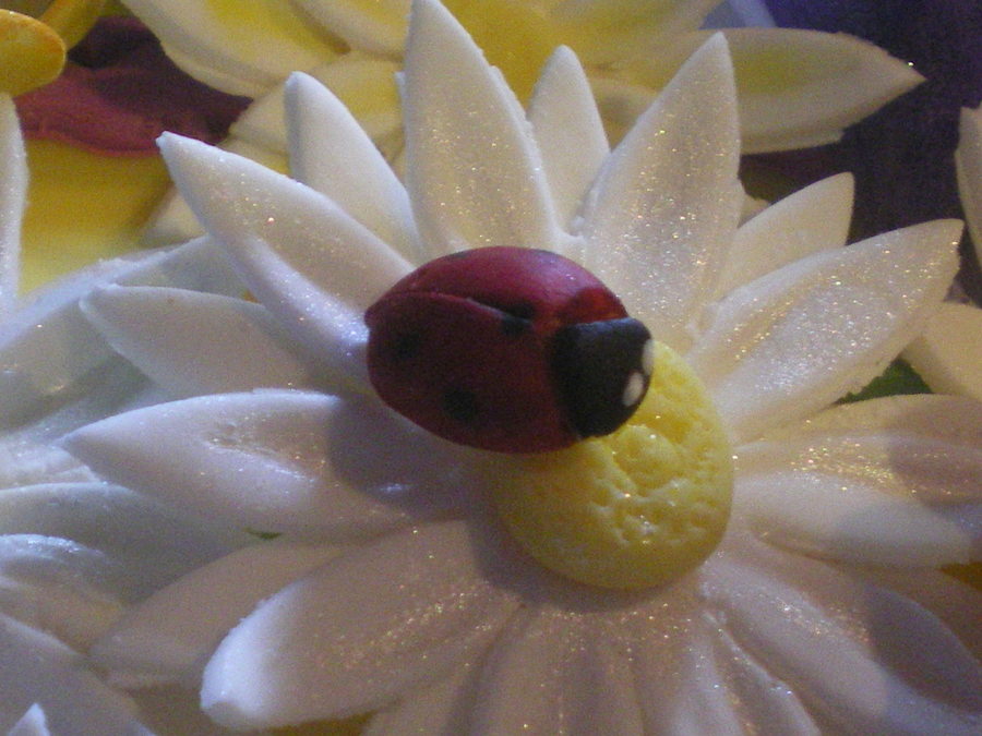 Easter Egg shaped, gumpaste flowers and ladybug